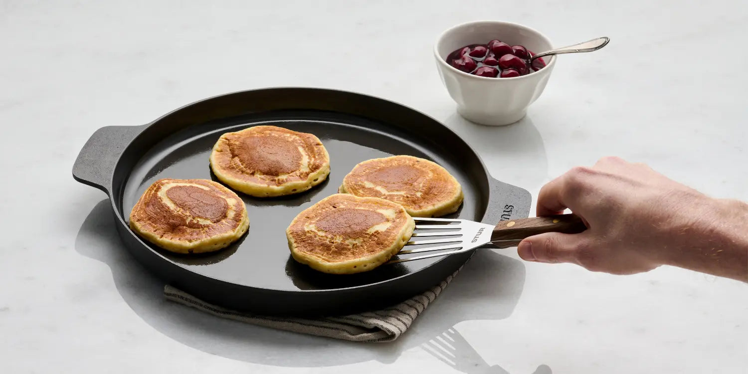 Mit der flachen Form und einer Höhe von ca. 3,1 cm lassen sich Lebensmittel leichter wenden und gleichmäßig bräunen. Ob auf dem Herd, im Ofen oder auf dem Grill – die STUR Planchapfanne bietet mehr Platz, mehr Kontrolle und noch mehr Möglichkeiten beim Braten.