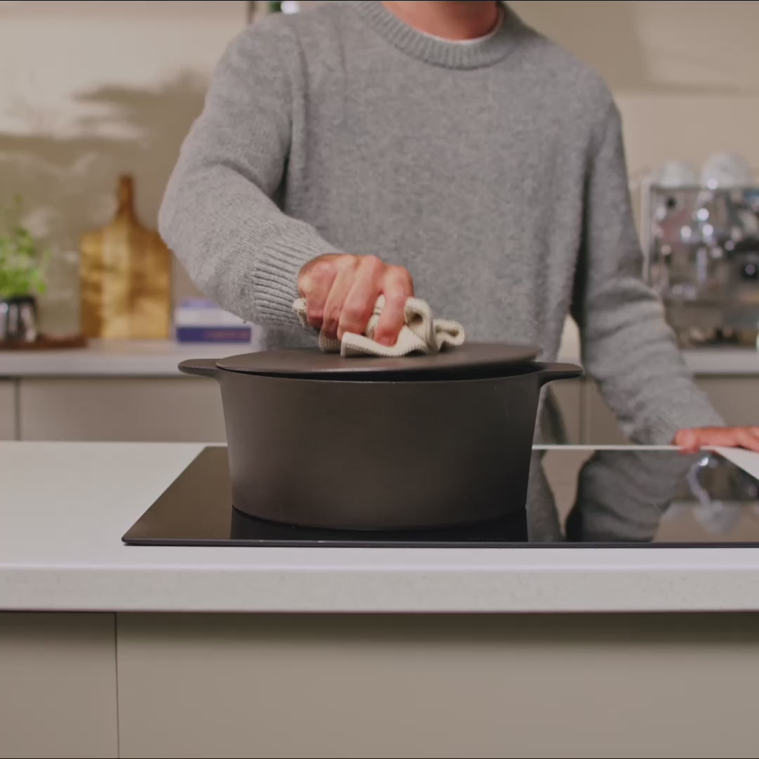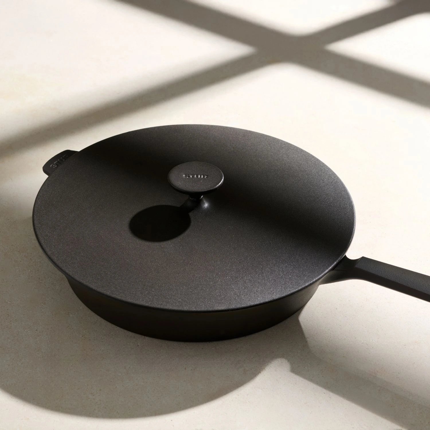 Der Gusseisendeckel des STUR Bräters schließt nicht nur perfekt auf dem Topf, sondern passt auch exakt auf deine STUR Pfannen mit 28 cm Durchmesser.